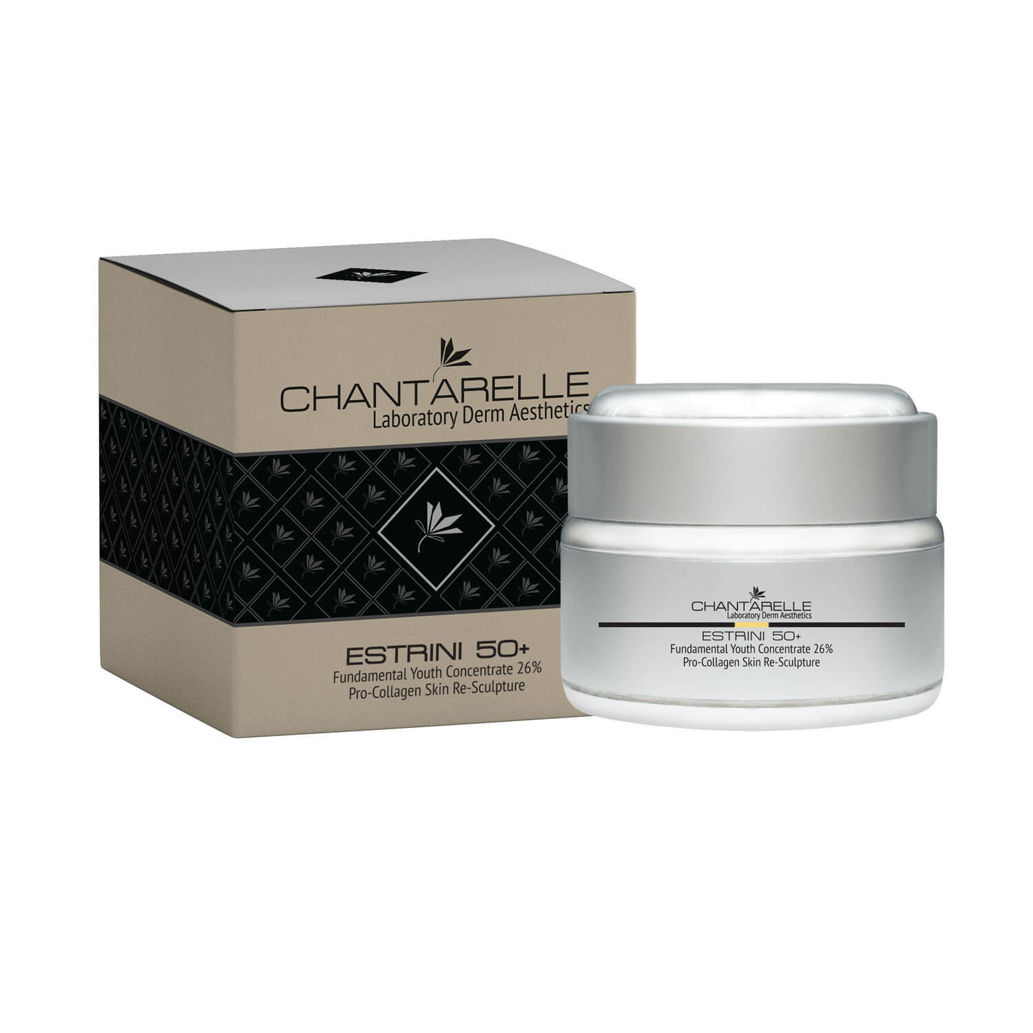 Премиальный концентрат Chantarelle Estrini 50+ укрепляет кожу, сокращает морщины, улучшает упругость и придаёт зрелой коже сияние и свежесть.